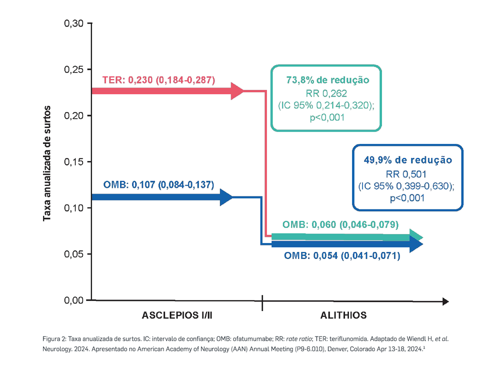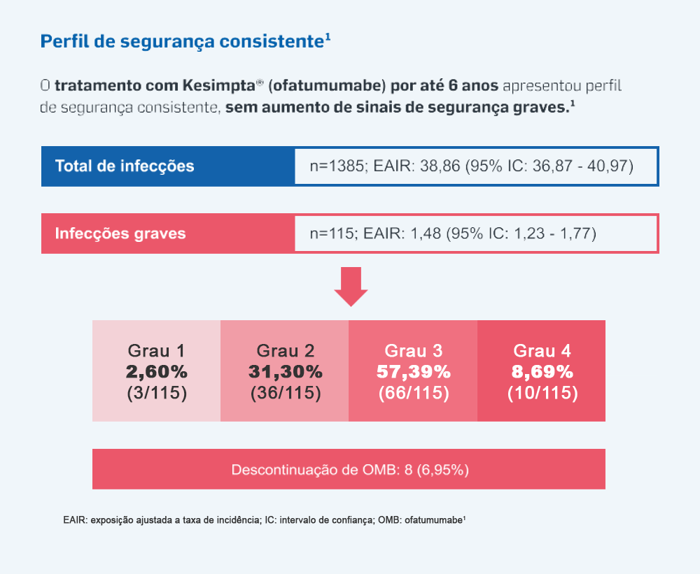 Os pacientes continuaram a ser acompanhados no estudo de fase de extensão aberto, ALITHIOS, apresentando dados de até 6 anos de acompanhamento que demonstram segurança e eficácia sustentada de Kesimpta® (ofatumumabe).2