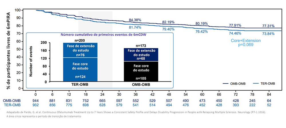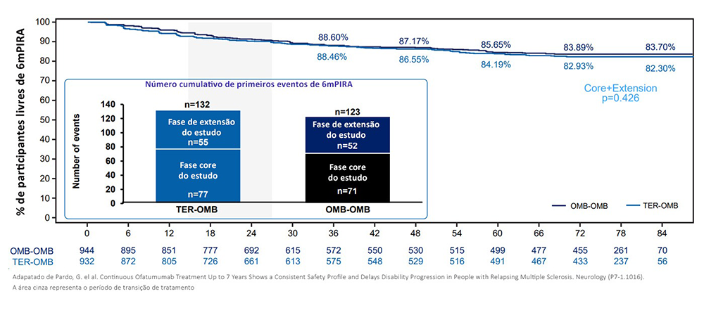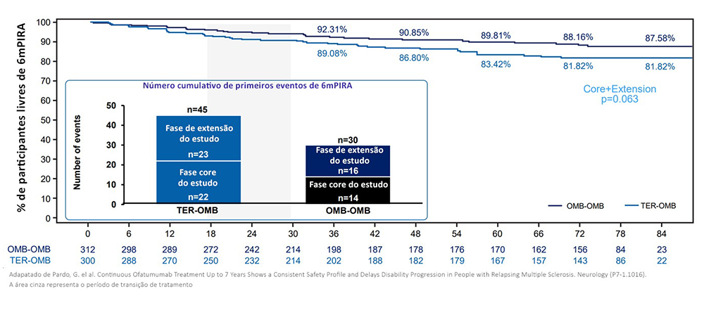 Além disso,  nos participantes recém-diagnosticados ou naïves que receberam ofatumumabe em primeira linha, aproximadamente 9 de 10 permaneceram livres do 6mPIRA.2