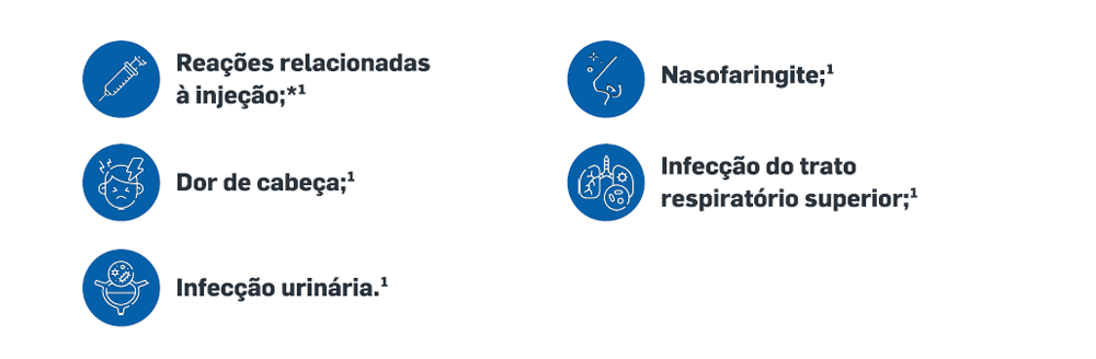 *A incidência de reações relacionadas à injeção foi maior com a primeira injeção (14,4%), diminuindo significativamente