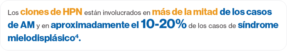 Como se ha comentado, se pueden detectar pequeños clones de HPN en más del 50% de los pacientes con AM, sin llegar a evidenciarse hemólisis. Sin embargo, los clones de mayor tamaño son clínicamente significativos y pueden dar lugar a hemólisis y un aumento del riesgo de trombosis6.