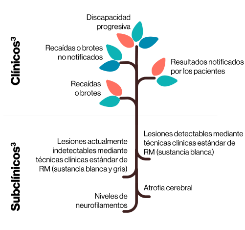 La reserva neurológica puede verse afectada por daños en el SNC, incluso en ausencia de progresión de la discapacidad o de brotes/recaídas clínicas; por lo tanto, deben vigilarse estrechamente todos los indicadores de la enfermedad, incluidos los síntomas subclínicos.3