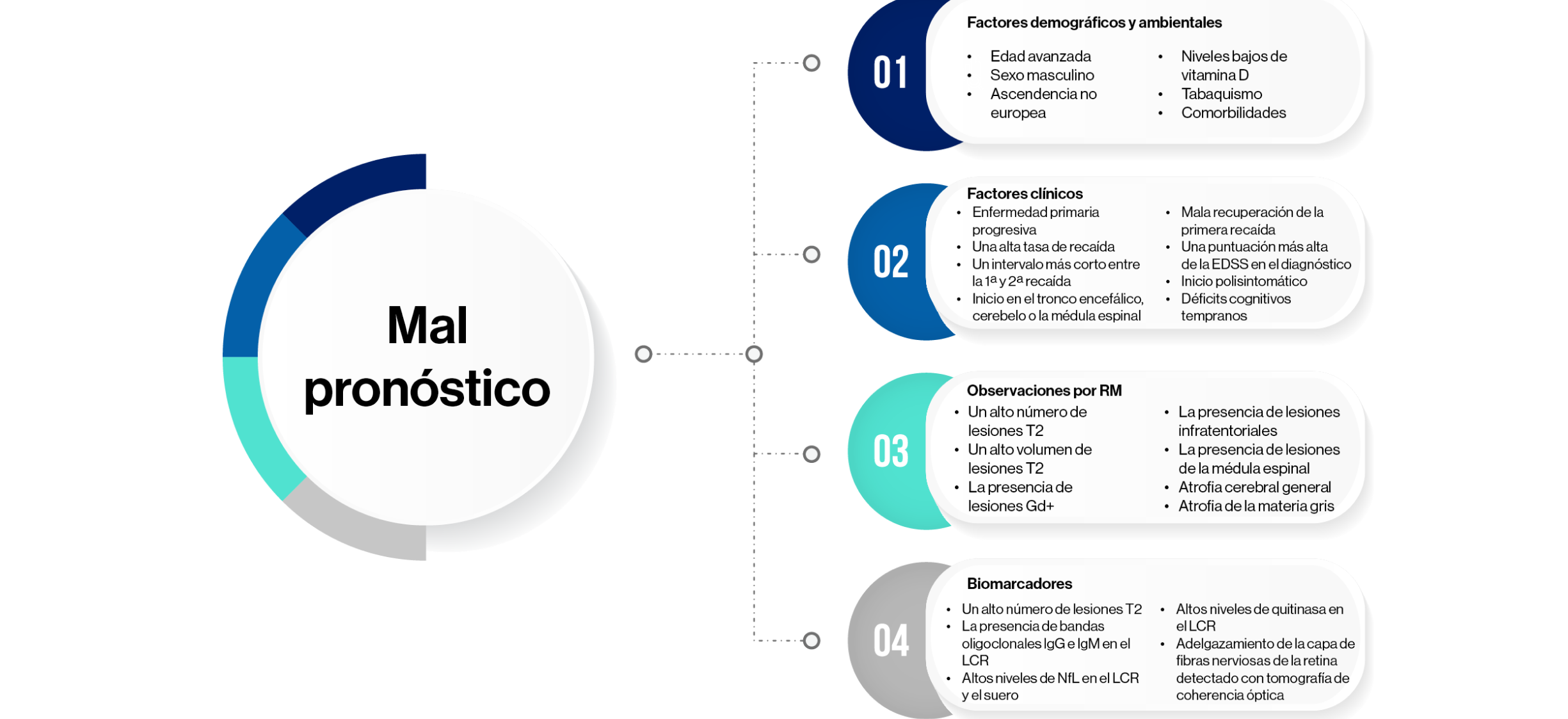 Los principales factores pronósticos negativos que predicen la progresión de la discapacidad en pacientes con EM son:2