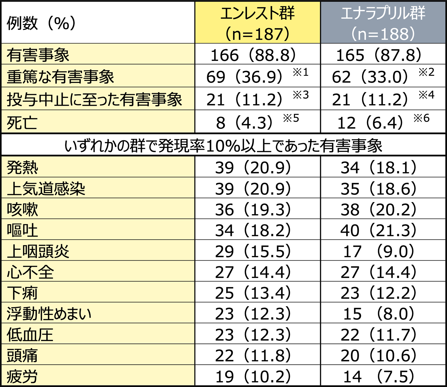 ※10:%はエンレスト群187例、エナラプリル群188例に対する割合