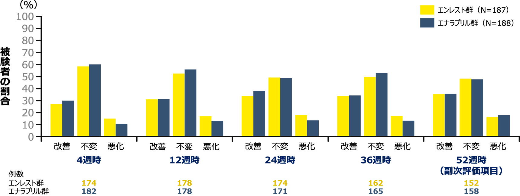 - 52週時のNYHA/Ross機能分類のベースラインからの変化