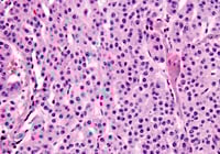 診断は、血中ソマトスタチン濃度測定をすれば診断できますが、ほとんどの患者さんで切除後の標本を免疫組織学的に染色することにより診断されているのが現状です。肝転移を50%以上と高率に来し、予後も良くないので早期切除が推奨されます。