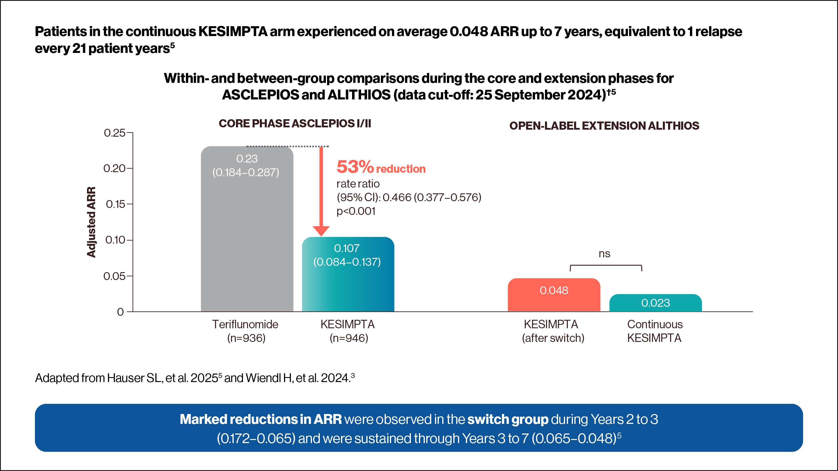 ASCLEPIOS I and II primary endpoint: annualised relapse rate (ARR) was defined as the number of confirmed relapses of multiple sclerosis (MS) per year, according to prespecified criteria.3