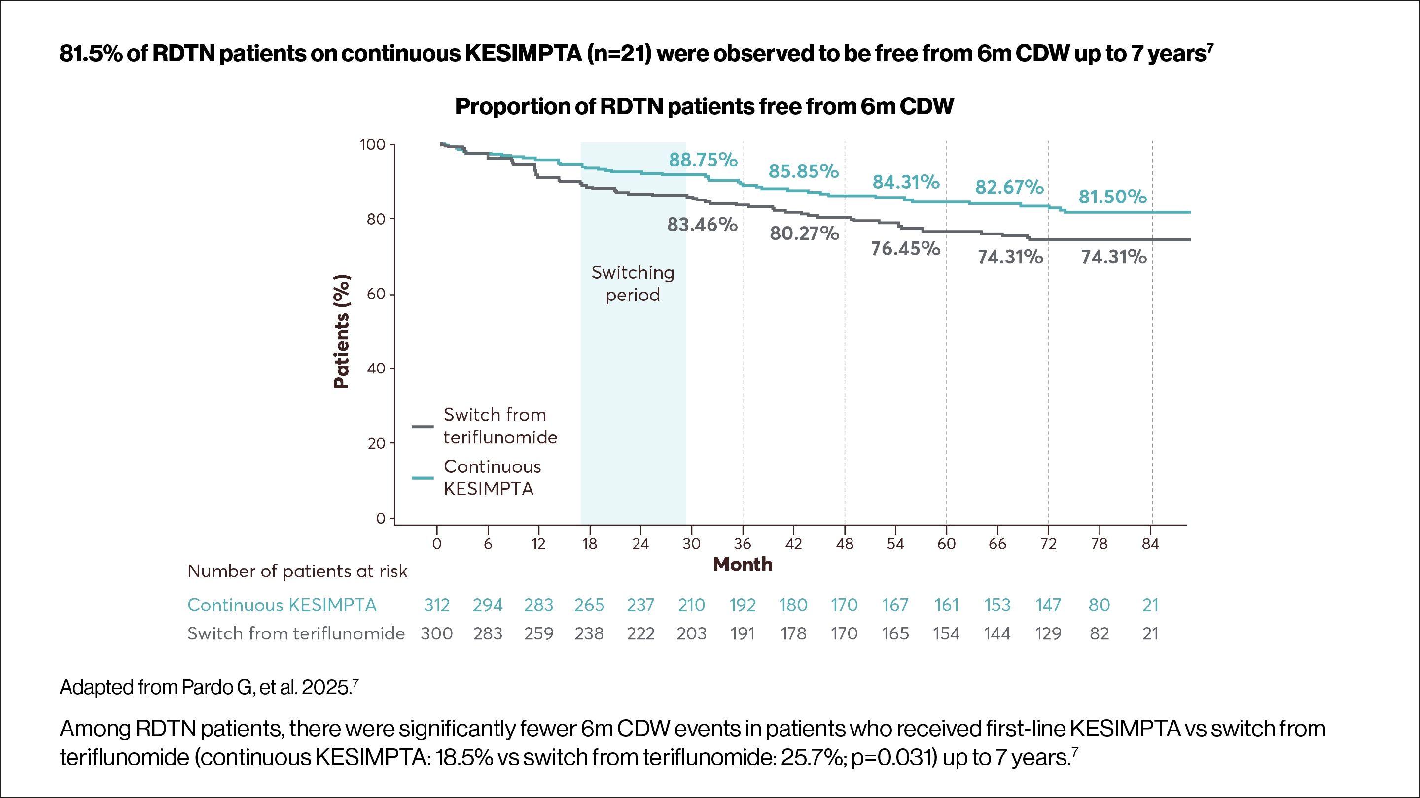 ALITHIOS is an ongoing, open-label, single-arm, umbrella-extension, Phase IIIb study assessing the risk–benefit profile of KESIMPTA (20 mg subcutaneously every 4 weeks) and its tolerability in patients with RMS.4