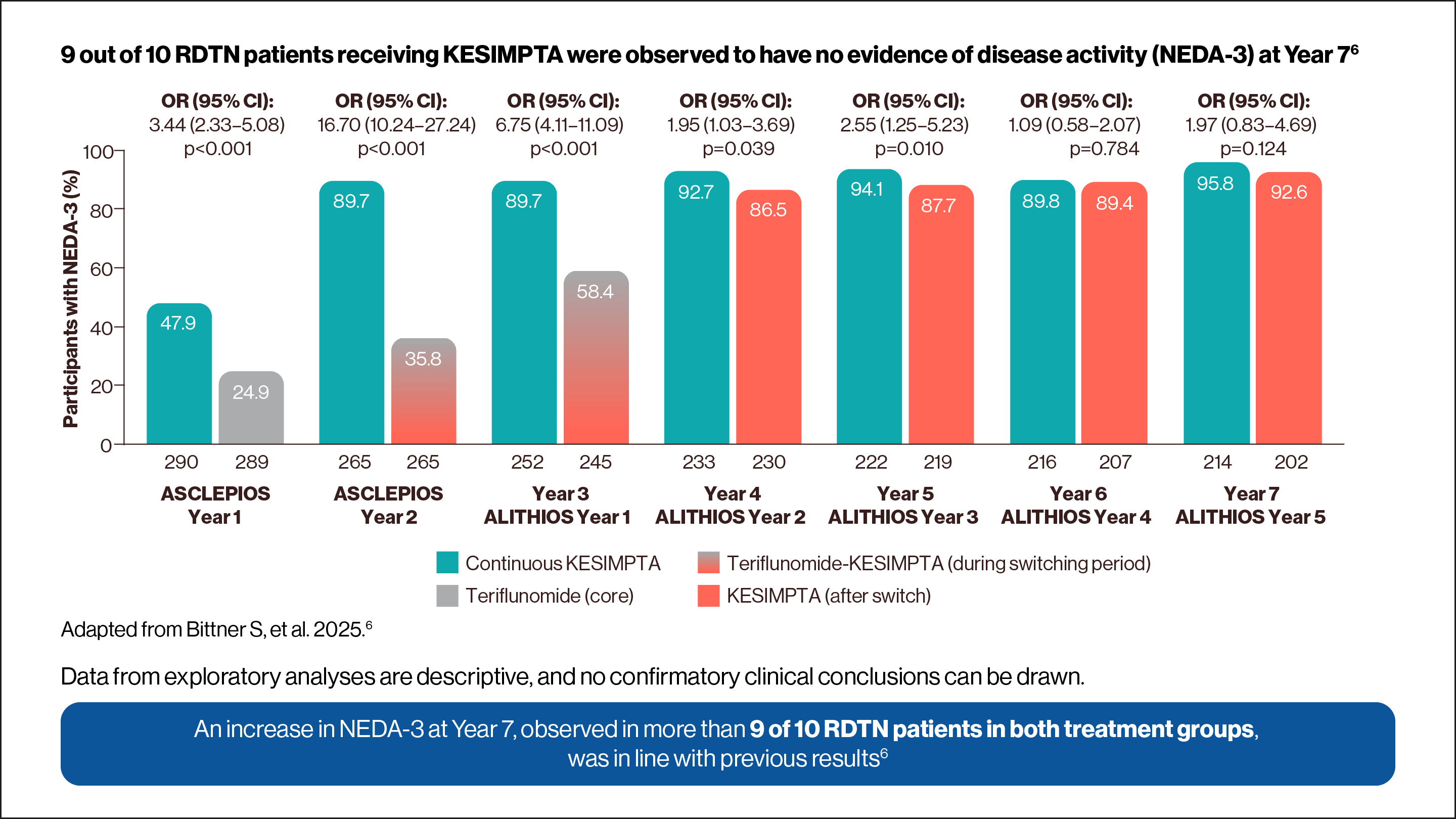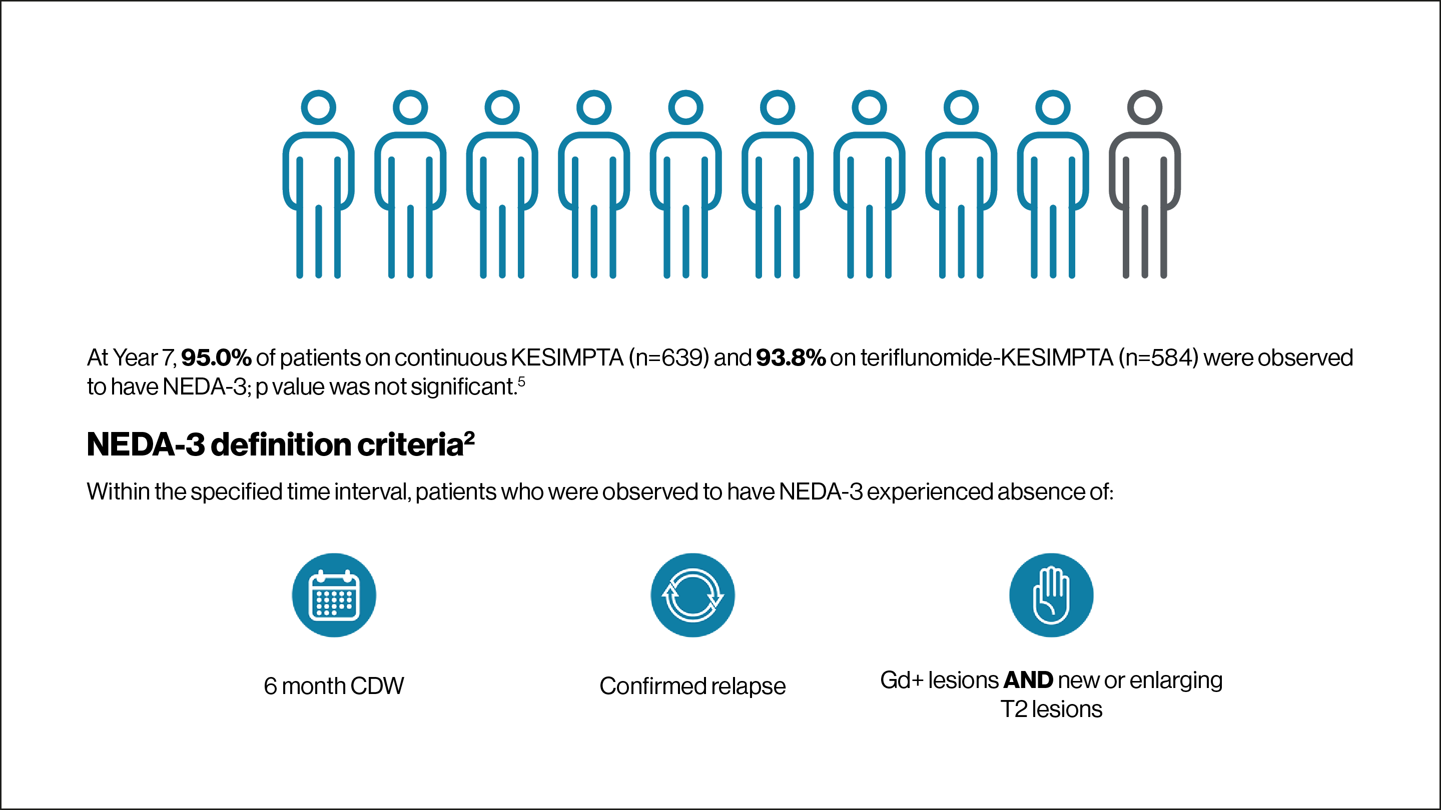 NEDA-3 was determined in a post-hoc analysis of pooled ASCLEPIOS trials.2,5
